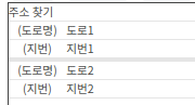 순서대로 (도로명) -> 도로1 -> (지번) -> 지번2 를 클릭해보겠습니다.