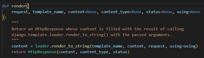 venv > lib> python3.10 > site-packages > django > shortcuts.py > render 를 타고 들어왔습니다.
