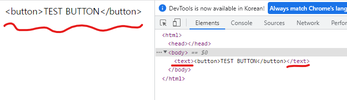 '<button>TEST BUTTON</button>'이 template에 그려질때
