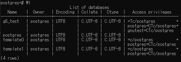 psql에서 \l (역슬래쉬, 영어 l)을 통해 table을 볼수 있다면,