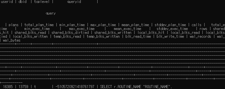 생 테이블로 보기에는 컬럼이 너무 많고, query가 긴 경우도 있어서 확장팩을 통해서 보는게 편하다.