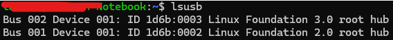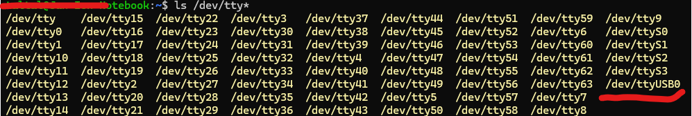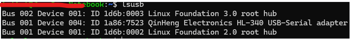wsl shell 에서 다음과 같이 usb 포트가 연결된 것을 확인할 수 있다.