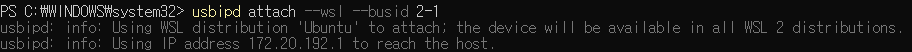 3) wsl에 해당 포트의 USB를 사용할 수 있도록 변경