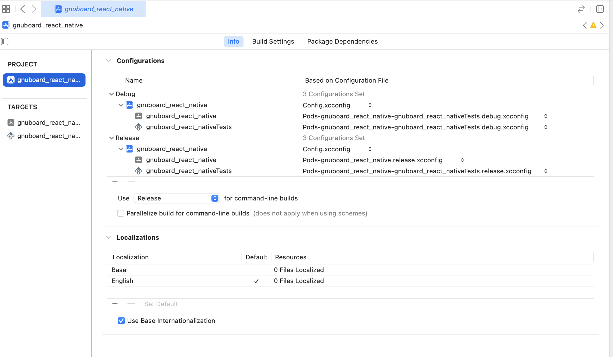 그리고 Debug와 Release일 때 모두 Config.xcconfig의 설정을 따를수 있도록 XCode에서 설정을 추가해준다.