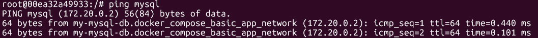 - Nginx 컨테이너에서 mysql 컨테이너로 ping 응답을 날려 확인해봅니다.