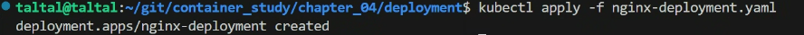 터미널에서 다음 kubectl 명령어를 실행하여 Service를 클러스터에 적용합니다.