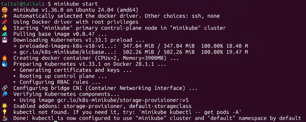 kubectl get pods 로 현재 상황을 확인하세요.