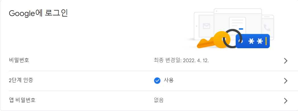 Google에 로그인 > 2단계 인증 - 전화번호 입력하고 문자로 인증 하는 등 쭉쭉 진행